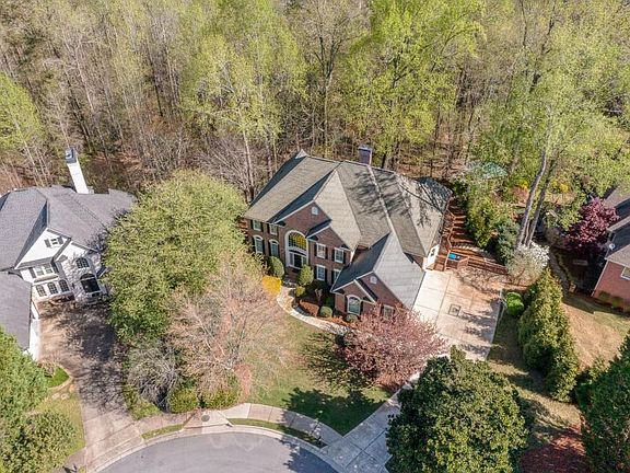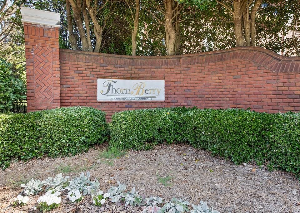 Gorgeous four sided brick beauty in coveted Thornberry! Located in a desirable cul-de-sac with level driveway, and 15 acres of undisturbed (HOA owned) tree buffer behind the lot. This is your very own cabin in the heart of Alpharetta! Well-maintained and cared for, this home has a new driveway; renovated kitchen with shaker cabinets; Viking oven; Ranier quartz counters; and huge custom pantry cupboard. You will love the two story living; spacious bedrooms and generous closets. Main floor features guest room with private full bath. Updated master bath features large shower and vaulted ceiling. Professionally landscaped terraced lot includes level portion ideal for a garden; trampoline or to convert to a grassy area. Two professionally engineered decks make the outdoor living even better . Lower deck is screened and features a hot tub! The terrace level has an additional fireplace; large living room and bedroom (or gym). There is a large unfinished area awaiting your design touches. Thornberry is conveniently located near GA 400; Avalon; downtown Alpharetta; the Greenway; Newtown Park; many shops and restaurants and wonderful public; private and charter schools. Thornberry features a strong community; many social events; sidewalks; street lights; playground; pool and tennis courts!!! Back yard has a level area which could be sodded for a swing set or trampoline!