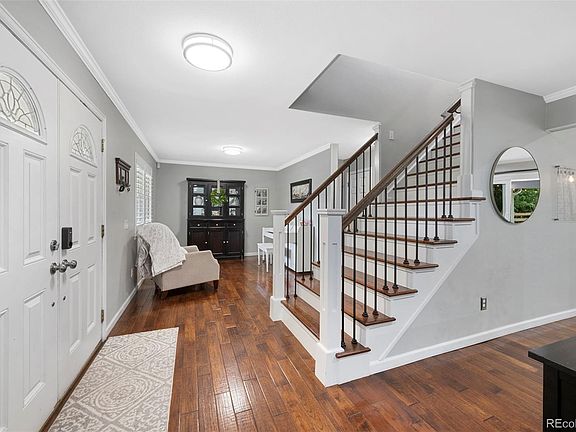 Beautifully updated home in a cul-de-sac right next to Shaffer Elementary in the heart of Ken-Caryl Ranch! As soon as you walk in the charming double doors you are greeted with gleaming hardwood flooring, a grand modern updated stairwell, plantation shutters, and immaculate attention to details throughout. Indulge in this luxurious remodeled Chef's kitchen with upgraded granite counters, new cabinets, stainless steel appliances, gas stove, pendant lighting and lots of extra counter space. Off the kitchen is a cozy family dining area with gas fireplace. The garage brings you into a beautiful bonus mudroom adjacent to the laundry room for extra storage area. Upstairs this home features 3 bedrooms with new carpet throughout, including the primary retreat with its own bath and walk in closet, and an oversized linen closet. Downstairs the finished basement has a fourth bedroom, game/media area, as well as refrigerator and wet bar. Walk outside to enjoy your beautiful lot with lush landscaping and a brick patio and built-in grill perfect for entertaining. Enjoy the benefits of high efficiency living with Solar Panels that transfer to the new owner and are paid in full. Newer exterior paint and 3 new north basement windows being installed before closing. Enjoy the lifestyle of Ken-Caryl Ranch with 26 tennis courts, award winning schools, 3 swimming pools, 4,800 acres of foothills open space, and over 45 miles of hiking, mountain biking, and equestrian trails!