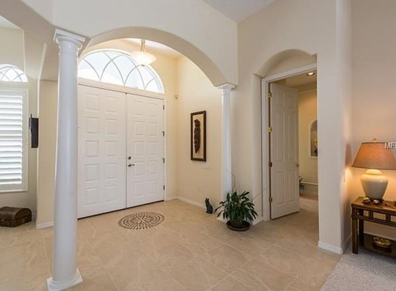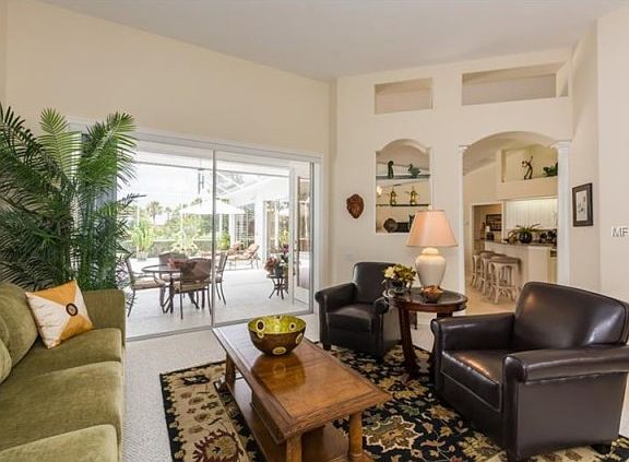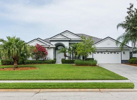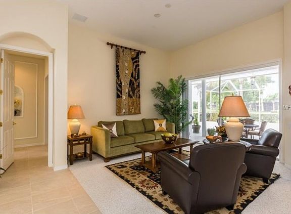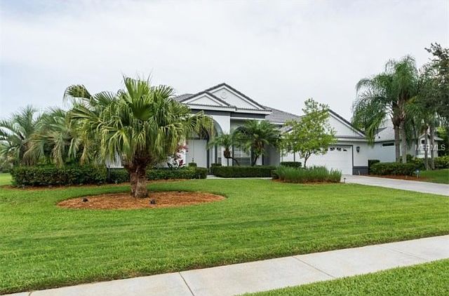 Breathtaking views from this lakefront 4 bedroom home in River Club, a community with no CDD fees and A rated schools. Magnificent homesite on almost 1/2 acre with landscape lighting and views of the water from your heated spa and expansive lanai. Gourmet kitchen features stone countertops, upgraded tile, backsplash, built-in desk, and large pantry. Cathedral ceilings and open and inviting floor plan was designed beautifully so each room flows from one to the other with all the main living areas overlooking the water. 4th Bedroom is 28x14 and can easily be converted to a bonus room. This home has been meticulously maintained with no detail overlooked. Only a few minutes to Lakewood Ranch Main Street and the new University Town Center.