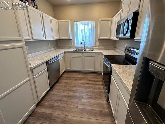 LIKE NEW. BETTER THAN NEW. CLEAN AS A WHISTLE. VERY WELL TAKEN CARE OF! BUILT IN 2020, THIS TRI-LEVEL HOME OFFERS A DESIGNER BEAUTIFUL KITCHEN, 4 BEDROOMS WITH SPACE FOR A 5TH BEDROOM, 3 Full BATHROOMS PLUS A 1/2 BATHROOM (TOTAL OF 4 BATHROOMS), A LARGE FULLY FENCED BACK YARD, AND A 2-CAR GARAGE. VERY FAMILY FRIENDLY HOME. TWO BEDROOMS UP AND TWO BEDROOMS DOWN. THE HOUSE COULD VERY EASILY ACCOMODATE A 5TH BEDROOMS AS IT HAS THE SPACE AND LAYOUT. ONE OF THE LOWER BEDROOMS HAS 220 VOLT AND COULD EVEN BE A SECOND FAMILY OR GAME ROOM. THE STAINLESS-STEEL KITCHEN HAS A HIGHY UPGARDED COUNTER DEPTH REFRIGERATOR, LARGE PANTRY, AND LVP FLOORING WITH SEPARATE DINING AREA. THE LARGE LAUNDRY ROOM IS CONVENIENTLY LOCATED ON THE UPPER FLOOR WITH THE MASTER BEDROOM. THE HIGH CEILINGS AND THE CHOICE OF COLORS MAKE FOR A MODERN BEAUTIFUL FLOW. CENTRAL A/C AND AUTOMATIC SPRINKLER SYSTEM INCLUDED. COVERED COMPOSITE DECKING ENTRY, PATIO IN REAR, CLOSE TO PARK, SHOPS, RESTAURANTS, AND SCHOOL, AND A DIRECT SHOT UP MARKSHEFFEL TO PETERSON AIRFORCE BASE AND VERY NEAR FORT CARSON.