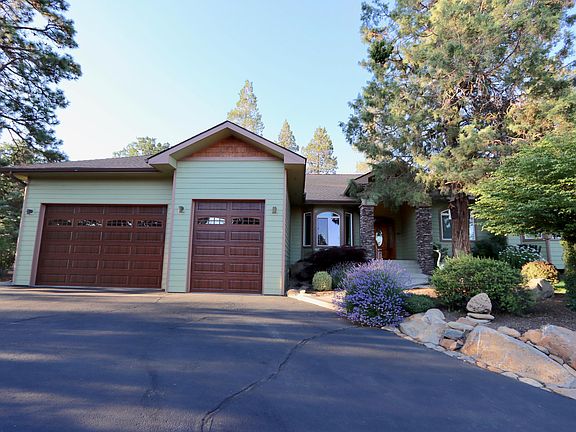 Contemporary 4 bedroom (2 masters), 3.5 bath 2615 Sq. Ft. on quiet 1/2 acre lot. More recently painted inside and out. Custom garage doors, Trex deck -Furnishings negotiable. Running Y Resort is sought after for its many home owner and resort amenities that include fitness center, indoor pool and sauna, tennis, pickleball, basketball, and volley ball courts, playground, 6 miles of paved walking trails, wild land walking trails, restaurants and more.