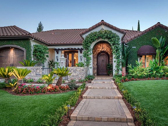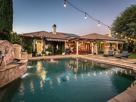 Exuding true elegance and timeless luxury in the prestigious Country Club III gated community is this stunning & recently remodeled Cornerstone custom. As you enter the home you are greeted by the elegant great room and custom temperature controlled 350 bottle wine room. This amazing living space flows seamlessly into the hub of the home & entertainer's kitchen featuring granite counters, stainless appliances, and butler's pantry. The kitchen area opens gracefully to the family room featuring a custom real stone heat n glo fireplace and 70 inch TV w/ surround sound to create the perfect environment for entertaining or family activities. The spacious owners suite offers a romantic sitting area w/ fireplace, soaking tub, walk-in shower, split vanities and dual master California closets. Isolated bedroom & bath offers privacy for guests. Spacious office w/ built-in dual desk can easily be converted to a 5th bedroom. Lushly landscaped yards feature low maintenance syn lawn, tiled courtyard w/ fountain in front & gorgeous pool w/ fountain wall in backyard which is an oasis that friends and family will never want to leave! This includes a custom tree house, slide/swing set, custom chicken/aviary coop, outdoor kitchen, cooling fans, high pressure misting system, outdoor TV/Sound system, fireplace & retractable awnings. Garage features new epoxy floor, paint & wall cabinets. Energy efficient home with a new 5 ton A/C unit, 2 whole house fans & OWNED 44 panel-11 KW solar system.