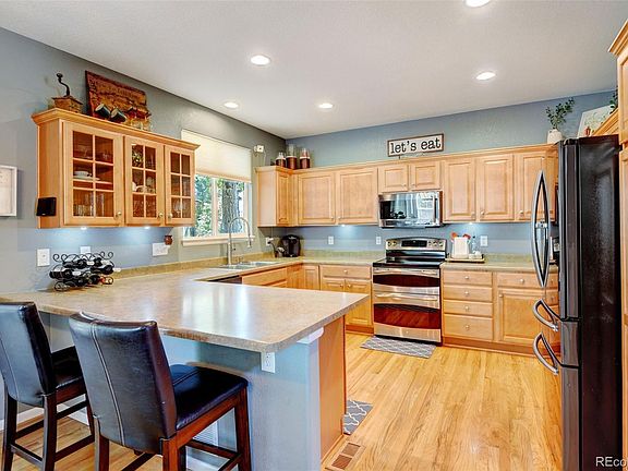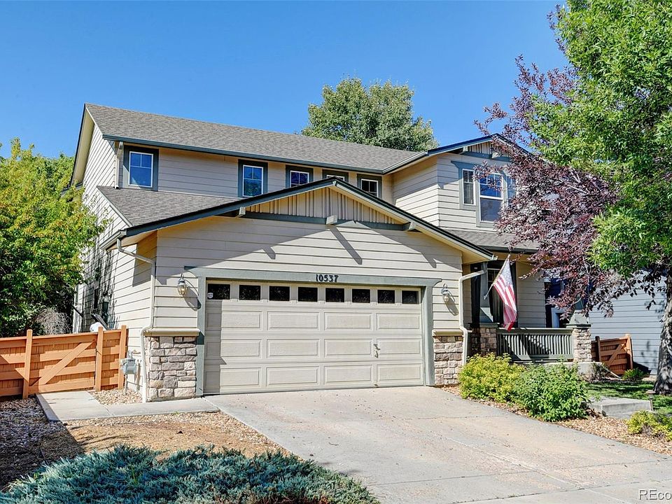 Welcome Home! This stunning two-story residence in Reunion boasts a charming front porch and a main-floor bedroom with a full bathroom with updated porcelain sink/counter. The well-appointed kitchen features newer stainless steel appliances, hardwood floors, and updated light fixtures. This home offers an open floor plan with breakfast bar, dining area, a cozy family room with surround sound speakers, and spacious walk-in laundry room with a laundry sink. Upstairs, you'll find four additional bedrooms, full bathroom, including a generously sized primary suite with a beautifully updated tiled bathroom with double sinks, large walk-in shower with speakers, and his-and-her closets. The finished basement offers a versatile open sitting area, a wet bar, with wine refrigerator and microwave, a 3/4 bathroom, a dry sauna, and a nice size storage room. Step outside to the expansive, private backyard, where mature landscaping, an oversized patio, a pergola, and a hot tub await. The home is immaculate inside and out, showcasing pride of ownership throughout. Seller is offering $5k in closing costs or can be used towards new carpet. Easy walk to Reunion Park, Rec Center and Coffee House. Hurry and set your showing today!