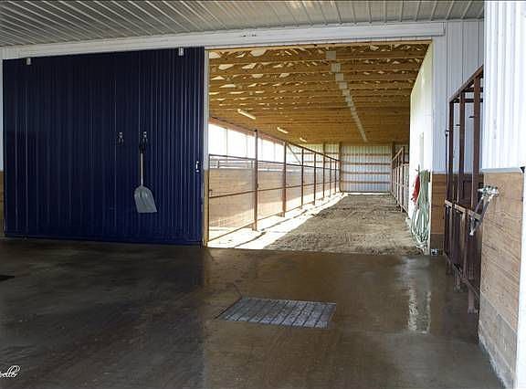 Missouri Horse Farm for Sale! Near Kansas City! Just minutes from the Kansas City International Airport, only a few minutes to I-70. This home, the barns and the entire facility was planned and designed to exacting standards. Beautiful home, wonderful views from every room. Quiet peaceful setting, gated entrance, ponds on either side of the driveway leading up to the property. The barns, arena and stalls are all well designed and laid out in a manner of perfect symmetry! The wide aisles flow from barn to arena, allowing room for loaders, manure spreaders and horses to work comfortably. The grounds are terraced and drain efficiently to the ponds for better water management. The home and the barns are thoroughly insulated and energy efficient. Automatic fly spray systems, keep the flies under control in all the barns. Ventilation systems keep the barns cool in summer and the main barn is even heated in the winter.