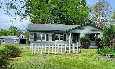 Neat as a pin and ready to move in! Nice 3 bedroom, 1 full bath ranch on 3 acres. You'll love the gleaming oak floors in this well kept home. Layout has a nice flow and the fireplace in the living room has a wood stove for efficient heating. The full basement could be finished and double the size of the home Set well off the road, the 3 acres extends deep behind the home. 2 single car garages, small barn, plenty of land for animals.
