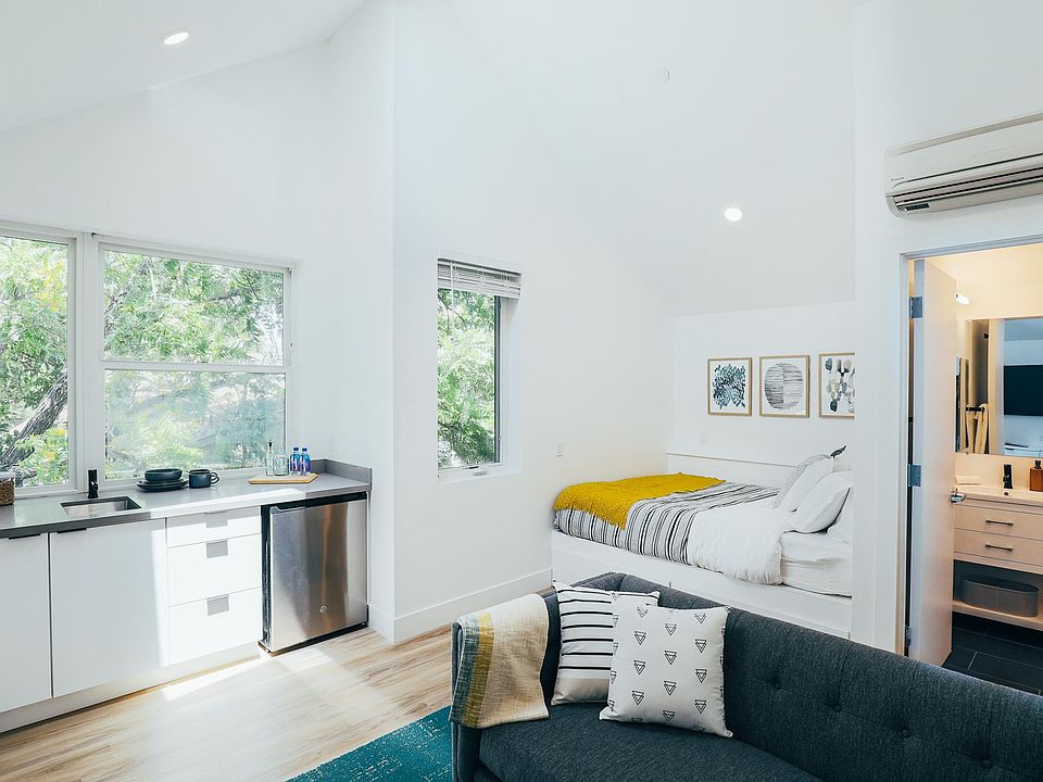 Welcome to the Linden - A Brand-New Living Experience: Built new this year, The Linden sits at the epicenter of Oakland's vibrant arts, music, and culture community. Comprised of six 3-story townhouse communities, each with five studios and a spacious, central lounge and kitchen, The Linden will have you immediately feeling at home, immersed in thoughtful design that is equal parts functional and inspiring. Nestled in a quiet neighborhood just six blocks from the iconic Fox Theatre and the legendary nightlife of Broadway, the Linden provides the ideal location for a walkable commute during the week, whether you're headed to downtown Oakland or to San Francisco via BART, and convenient access to everything downtown Oakland has to offer. Although you'll be greeted by a warm community that champions inclusion and individuality at The Linden, you'll always have the freedom to retreat to your studio, which is appointed with everything you'll need for a standalone studio experience, including a private full bathroom. Additional features at The Linden: * The HEPA filters installed in each common area reduce unhealthy particulates and provide clear, clean air no matter what is going on outside. * Free Kitchen Box at move-in. We've curated a collection of all the kitchen essentials to help you make the most of the main kitchen and your private kitchenette. Valued at over $100, it's another small thing we're doing to make for a seamless move-in experience. * Lightning Fast Wifi & Cable TV. All community members have unlimited access to our super-fast Wifi, and all studios have been pre-wired for included cable TV for those yet to cut the cord. * Independent Heating and Cooling. Run a little hot or a little cold? Each unit has its own dedicated thermostat, so you can keep the temperature of your space right where you want it. * Washer Dryer in Townhouse. Each townhouse has a premium washer and dryer for your use, 100% free of charge. * Flat rate, all-inclusive community access fee. With energy-efficient appliances and green building construction, our space uses much less energy than a conventional building in the Bay Area. To pass that benefit along to you, we have combined all utilities and services, including weekly common area cleaning, into a low flat rate of $75 per month. We value flexibility, so you have options for everything: * Furnished or unfurnished spaces. All of our studios come furnished, with a queen-sized mattress, couch, and TV that compliments the space perfectly. However, if you prefer to bring your own things with you, we're happy to provide you with a blank slate to make your own. Please note: if you are planning to bring your own mattress, our in-studio embedded bed frames accommodate queen size mattresses and we ask that you wrap it in a mattress protector prior to moving in. * 3- 6- 12- or 18-month lease terms. Everyone's situation is different, so we're offering flexible lease terms to accommodate wherever you are in life. * Optional Linen Packages. Our linen boxes have you covered. The kit consists of a high-quality set of high thread-count bedsheets, a queen-size blanket, two pillowcases, two towels, and a set of washcloths, available in standard ($75) and premium ($125) sets. Click the link for more details. A conventional security deposit or small monthly fee. Cost of moving to a new apartment stressing you out? Don't worry, we have partnered with Obligo, a service that allows you to forgo the conventional security deposit in favor of a small monthly fee. Keep your money in your pocket, and when it comes time to part ways, we will bill any move out charges to you directly. Simple! Optional in-suite cleaning.We've partnered with a premier hospitality cleaning service to take great care of all common spaces and, for a small monthly fee, can pop into your studio and tidy up for you every week. Early move-in accommodation program. A perk of a new construction building: as long as you pay your move-in fees, you can collect your keys up to 30 days in advance, on us! You're a great fit for our community if : * You value an inclusive community of individuals with diverse backgrounds and perspectives. * Your total monthly household gross income is greater than or equal to 3-times the monthly rent (2.5-times the monthly rent when current debt obligations are considered) and you can provide proof of income in the form of a pay stub, offer letter, or bank statement. In certain extraordinary circumstances, we are willing to re-evaluate our underwriting and credit score requirements. Please do not hesitate to give us a call if interested. * You have no prior evictions. * You purchase renters insurance and have proof of coverage prior to lease signing. Pricing Explanation: The listed rent of the suite is the average effective rent paid for our 1B suite on a 14-month lease term, including rent credits for two months base rent. Rent price and promotions are subject to change. Discounted pricing available on approved applications only and contingent upon enrollment in AutoPay. Household income requirements are based on 3-times market rent, or 2.5-times market rent once debt obligations are factored in. Any mention of "studio" in this ad is solely for illustrative purposes, as each individual suite is legally considered 1 of 5 bedrooms of a legal dwelling unit referred to as a townhome above. Utility reimbursements are part of a community fee and will be a fixed rate during the initial term of your tenancy. Equal Opportunity: Federal law prohibits housing discrimination on the basis of race, color, national origin, religion, sex, familial status, or disability. do NOT contact me with unsolicited services or offers