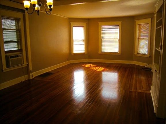 Rent this 1st floor flat w/driveway off upper Union. Beautiful hardwood floors in most rooms & remodeled bathroom has tile w/his & her sink. Bedrooms have closets & built-ins. New windows & built-in hutch in dining room. Access fully equipped kitchen through French doors w/original doorknobs. Washer & dryer conveniently located in basement. Spacious fenced backyard w/detached 3 season room(finished & was formerly garage) that has French doors &wood stove that can be used for storage or more living space.