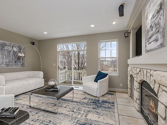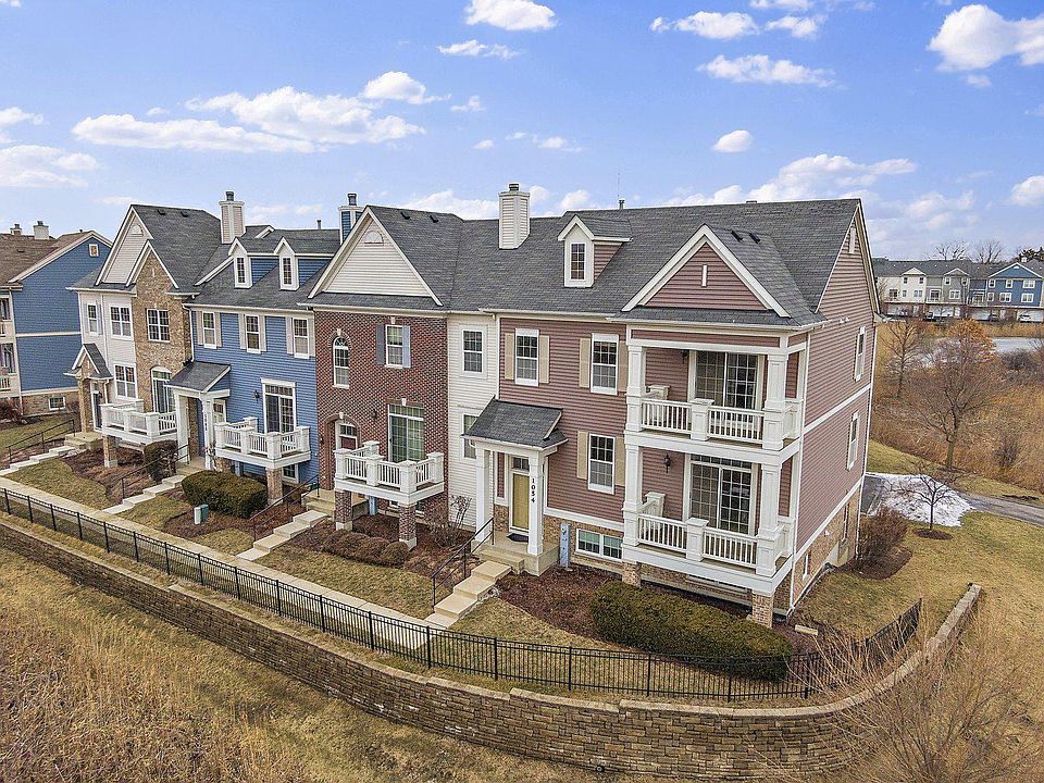 Upgraded to the hilt and an end-unit? On one of the most desirable lots in the neighborhood overlooking the fountain? YES! This Bellagio unit boasts the largest floor plan available. Upgrades include: THREE BALCONIES, a HUGE kitchen w/granite counters, roll-out shelves, 42" cabinets w/crown, stainless appliances, pantry, large dining area! Family room w/gas fireplace and stone surround! Need an at-home office or 4th bedroom? Here it is! Upstairs, the primary suite boasts luxury touches: PRIVATE BALCONY, tray ceiling detail, a dressing area with multiple closets, and a double sink! Two more large bedrooms with beautiful views and ample closets. Brand new HVAC fall 2021. Less than 1/2 mile to Ross Ferraro Town Center, walking paths, gazebo, fountain, ponds, summer outdoor concerts, Fountain View Recreation Center, health club, indoor swimming pool, track, basketball courts, classes, Hampe Park, skate park, basketball hoops, playgrounds, open fields.