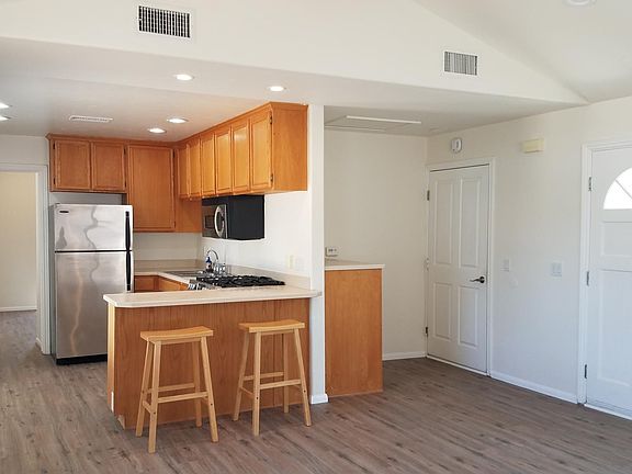 Located in the northwest coastal area of Carlsbad close to shopping, restaurants, and beaches. Easy freeway access. Newly painted interior, new vinyl plank flooring, new gas range, and window shades. French doors open to fenced backyard and patio. Ceiling fans in both bedroom and living room with vaulted ceilings. Large 2 car garage with washer/dryer hookups, storage and half bath. Home set back from the street. Owner pays for water/trash and provides bi-monthly yard maintenance. Renter responsible for all other utilities. No smoking. Pets: Cat or small dog. 2 pet max. Additional pet deposit of $500. or $650. for 2. Renters insurance must be obtained. All information subject to change without notice