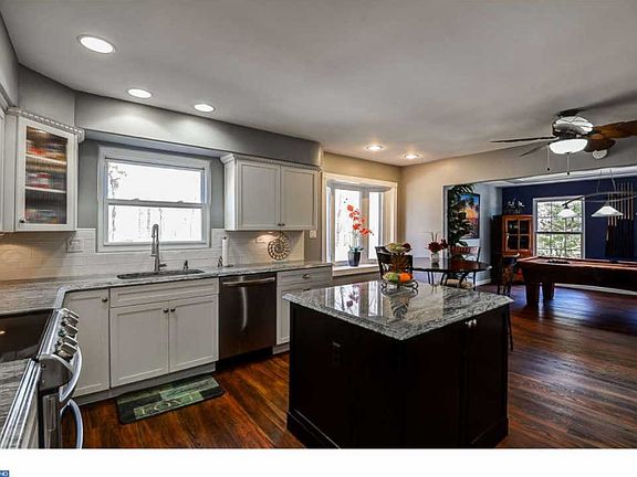 Welcome home to this immaculate home loaded with upgrades and a first floor in-law suite. Approaching the home, you'll notice how it is perfectly situated on a corner lot with a beautifully landscaped yard and great curb appeal. The front porch invites you to stay awhile as you are greeted by double-doors leading inside to the open two-story foyer. The home flows effortlessly and is designed for ease in entertaining friends and family. The newly remodeled kitchen will certainly be a gathering place with its gleaming white cabinets, elegant down-lighting, stunning granite counter-tops, custom island,subway tiled backsplash, recessed lighting and new stainless steel appliances. The breakfast nook is nicely situated next to a bay window overlooking the park across the street. The kitchen is open to a well-sized dining room, which is currently being used as a pool room. The family room offers beautiful floors and a cozy brick fireplace with French doors leading to a deck in the private, fenced backyard. The main floor also includes an in-law suite with two well-sized closets, a remodeled full bathroom and brand new carpet. Upstairs you'll find a Master Suite with an expansive walk-in closet and a spectacular updated Master Bathroom. The Master Bathroom includes a jetted tub, double vanity and oversized shower. There are three additional Bedrooms with great closet space, ceiling fans, plus a hall Bathroom with double sinks. All this living space and there is still a full finished basement with brand new carpet, recessed lighting, large entertainment area with a full wet-bar, and another full bathroom. The home also includes 3 zone high-efficiency gas heaters and air conditioners! Award winning Cherry Hill Schools, walking distance to houses of worship and Willowdale swim club, easy access to major roadways and shopping. You will be excited to call this your new home!