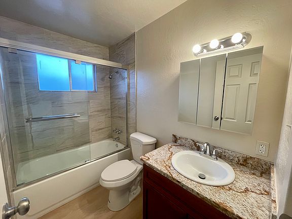 Complex is located on quiet side street walking distance to downtown Livermore for easy access to shopping, dining, and entertainment. Unit is newly renovated, upgrades include matching cabinets and granite countertops in kitchen/bath, appliances (Oven/stove/fridge/hood fan/ AC), new shower/tiles, lighting. Reserved parking space in carport included with unit. Unit has AC and Fan. Private pool for resident use during summer months. Shared laundry facilities on site (upgraded machines no coins required). Unit located on ground floor - private patio off the living room. Normal water and garbage utilities included with rent. Reserved carport space included with unit - NO additional fees or permit required Property is non-smoking property No dogs or cats