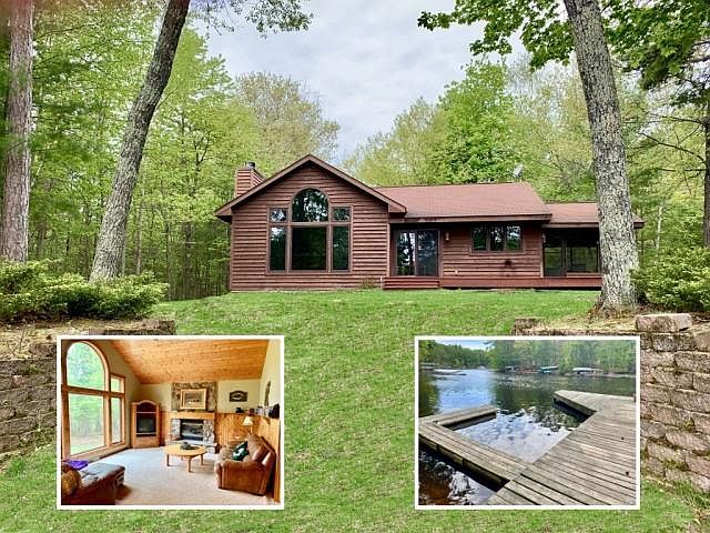 4 Bedroom, 2 Bath home on the Eagle River Chain! The cedar sided home features an open concept design with a lovely great room/kitchen with fireplace. The home offers almost 1700 sq. ft. of well cared for living space. There is a great screened porch to enjoy your summers! It sits on 151' of frontage and a very private 2.28 acres. The home sits near the end of the road and has a long and private paved driveway. A permanent pier is already in place with a boat slip. The home has been used as a rental and has a great rental history!