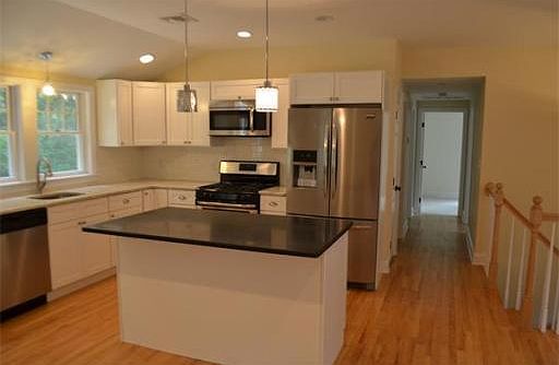 This sunny and bright home has been completely renovated from top to bottom by a local craftsman with quality finishes. It features a custom granite and stainless kitchen with recessed lighting, center island, hardwood floors and open floor plan. The living room features a gas fireplace and hardwood floors. A new deck overlooks a private and flat yard with shed. There is a new Title V septic system as well as updated electrical, new energy efficient gas burner, new roof, exterior clapboard, shingles and home is roughed in for central air conditioning. This home is located in convenient North Marshfield, close to Rt. 3, Greenbush Train to Boston, schools, including new Marshfield High School and shopping. Move in and enjoy!