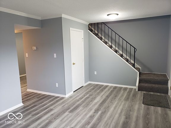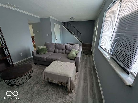 This townhome conveniently located in Greenwood Trails offers a fenced patio, separate dining area, and an updated kitchen with new cabinets, gas range, and breakfast nook. Laundry closet on the main level. The main level features new LVP flooring, with newer carpet upstairs. The primary bedroom includes its own balcony. Conveniently located to shopping, I-65, parks, and more. HOA monthly fee covers water, trash, lawn care, snow removal, and more. Preliminary title ordered through Dominion Title. This property is located in a Planned Unit Development (PUD). Showings require seller approval; home is occupied.