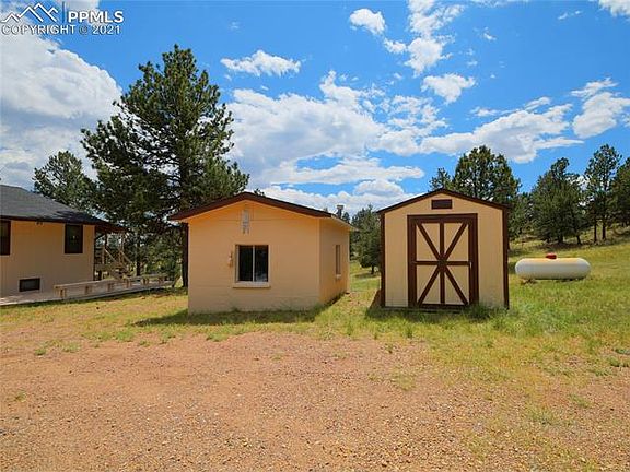 Incredible opportunity in the highly desired High Chateau Subdivision. Unbelievable views and a generous open floorplan make this the perfect mountain home. Views of Pikes Peak and Mt. Pisgah and nestled on 4.42 acres, this 4600+ square foot home provides endless possibilities. The bright and spacious kitchen looks into one of the family rooms, where a cozy fireplace provides a perfect spot to gather. Find two additional spaces that could work wonderfully as a dining room and living room! A generous master suite can also be found on this level. This home is vast, open, and airy with incredible views from almost every window. On the walkout lower level, find 4 additional bedrooms and a huge great room that features a brick wood burning fireplace. Plenty of room for an additional family and game room! At the end of a long day, relax in the enclosed hot tub room and take in the beautiful scenery. There is incredible potential in this home with a little updating and your own personal touches! Possibilities are endless as a personal home, a vacation rental, or multi-generational living arrangement. This home has been loved and cared for and will be a slice of heaven for the next owner.