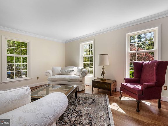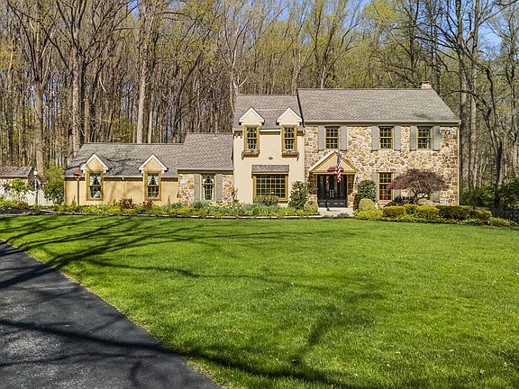 Welcome to 1054 Kerwood Rd, a beautifully appointed 4-bedroom, 2.5-bath colonial nestled on a private, professionally landscaped 1-acre lot in the heart of West Chester, PA. Tucked away at the end of a quiet cul-de-sac and backing to the scenic Oakbourne Park, this home offers both privacy and convenience. Built in 1983 and updated with new Hardie-Board Siding and windows in 2018, the home showcases timeless charm and thoughtful updates throughout. Inside, Brazilian Mahogany hardwood floors, crown molding, and elegant wainscoting set a warm and refined tone. The spacious layout begins with a formal living room to the right and a generous dining room to the left, leading to a chef’s kitchen complete with Quartzite countertops, a large island, stainless steel appliances, and a sunlit eat-in area. Just off the kitchen, the bright and inviting family room features a gas-burning fireplace, perfect for cozy evenings. A large office with abundant natural light offers an ideal work-from-home setup, while a pantry, powder room, laundry area, and access to the two-car garage with attic storage complete the first floor. Upstairs, hardwood flooring continues throughout, including in the spacious primary suite, which boasts a large walk-in closet and a beautifully updated en-suite bath. Three additional bedrooms offer generous space and share an updated hall bathroom. The finished basement adds over 725 square feet of versatile living space, including a large rec room, a second office, a cedar closet, and plenty of storage. Step outside to discover a backyard oasis featuring a manicured lawn, lush gardens, a large deck, and a spectacular patio surrounding the in-ground saltwater pool and spa, all with serene views of Oakbourne Park. This exceptional home is located just minutes from West Chester Borough, major commuter routes including Rt 202 and Rt 1, the Delaware border, and is part of the award-winning West Chester School District (Rustin High School feeder). With Oakbourne Park Athletic Complex just a short walk away, offering tennis, pickleball, basketball courts, fields, trails, and more, this home truly has it all. Don’t miss your chance to own a peaceful retreat that blends comfort, style, and an unbeatable location.