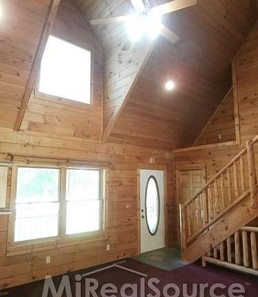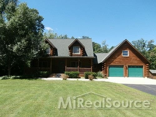 Log house in beautiful setting just outside of town on approx. 4 acres with woods! Built 1997 with finished lower level offering huge family room/rec. room, possible 4th bedroom, and an office! Cathedral ceiling in living room with gas fireplace, open to dining room with slider to large deck. Maple kitchen with appliances included. Upper level master and loft room overlooking living room. Two full baths. So many extras: main floor laundry, stainless steel appliances, cable wired to every room, stereo wired to deck, & more! Two additional parcels included in sale