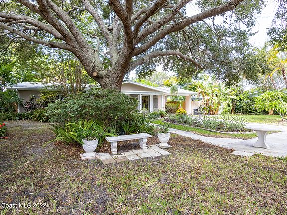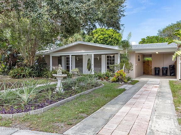 This beautiful single family home and .33 acre property is great for a full time residence or rental property. It is located 1 block from the Indian River Lagoon, near the Goode Park boat ramp and Palm Bay Marina, and is a 12 minute drive to the beaches. Updates include brand new 2022 PVC sewer pipes, brand new water heater, remodeled bathroom and kitchen with SS appliances, and fresh interior and exterior paint. 2016 roof with soffit and fascia. 2015 AC unit with new ductwork and vents. 2016 vinyl flooring.