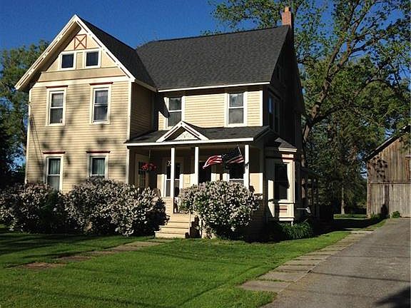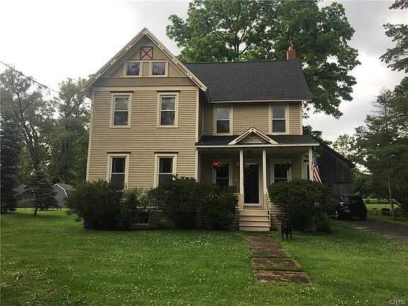 Charming Country home in the Town of Genoa. This lovely home offers 4 bedroom & two full baths. The first floor has hard wood floors through out,Large eat in kitchen with Stainless steel appliances,1st floor laundry,full bath,bedroom & lovely living room. The 2 nd floor has 3 good size bedrooms & a full bath.The exterior has mature landscaping & a huge barn great for storage.