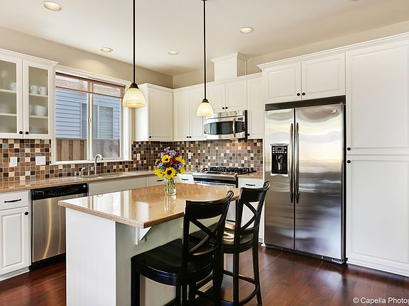 - Appliances: Dishwasher, Stainless Steel Appliance(s), Free-Standing Refrigerator, Island, Quartz, Free-Standing Gas Range