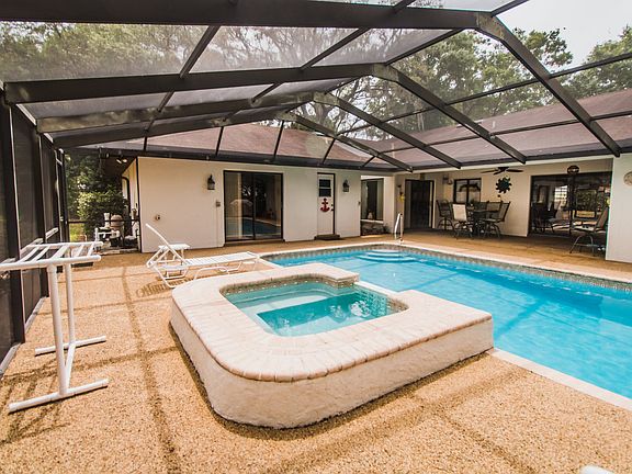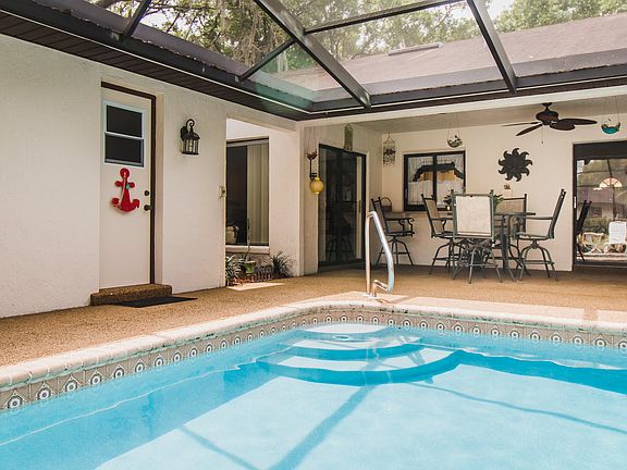 Looking for a well-loved family home in a great school district? Look no further than this sprawling pool home with gleaming wood floors. (No laminate here- these floors are the real McCoy and hand finished. ) Formal living and dining room and center kitchen with generous breakfast area overlooking family room provides lots of space for the growing family. Featuring a split bedroom plan, the carpeted master suite has very large ensuite bath with double sinks, garden tub, shower stall and large walk-in closet. The other two oversize carpeted bedrooms share the tiled pool bath and feature walk-in closets, as well. Total of five sets of sliding glass doors to the screened lanai so this home has lots of natural light. New roof and A/C installed 2018, resurfaced Pool Deck 2017, Seamless Gutters, Water Softener System . Oversized 1/2 acre lot boasts sprawling front yard, fenced back yard with mature landscaping and private conservation area for fishing, picnics or just hanging out. No HOA fees