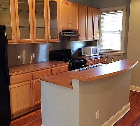 You'll love the charming hardwood floors and exposed brick in this one bedroom apartment near Schiller Park. The updated kitchen offers a breakfast bar and appliances. There is a spacious living room/dining room just off of the kitchen. The front bedroom has a ceiling fan, oversized closet, and an ensuite bathroom. There is a washer and dryer provided for the tenant's use located just off of the kitchen. The back yard is shared with the upstairs neighbor. Parking is on-street. Dogs will be considered for additional pet rent. Cats are not permitted. $30 water charge per adult added to the rent to cover unlimited water usage. *First floor unit of top/bottom duplex* $30 water charge per adult/month for water/sewer/trash.