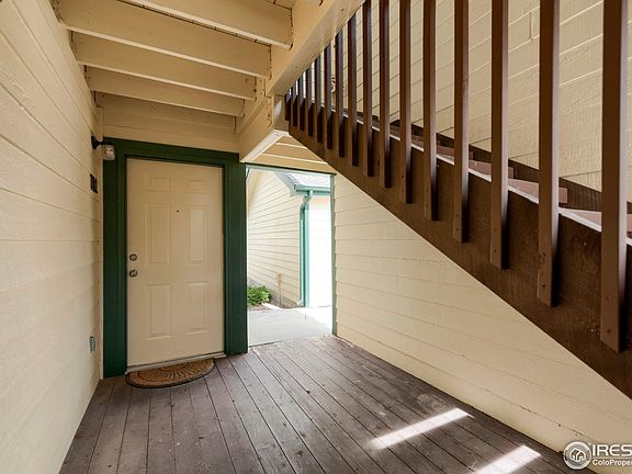 Fantastic 2 bed, 1 bath condo in great location close to CSU w/ bus stops nearby! Brand new carpet, coretec floors & interior paint! Beautiful views from covered deck of foothills, the A & Horsetooth Mountain. Southern exposure & backs to open space w/ mature trees. Spacious living room w/ cozy fireplace & eat-in kitchen w/ bar stools included. Large bedrooms & plenty of storage space from entry closet, 2 linen closets & balcony. New roof, newer exterior paint. A/C. Oversized detached garage.