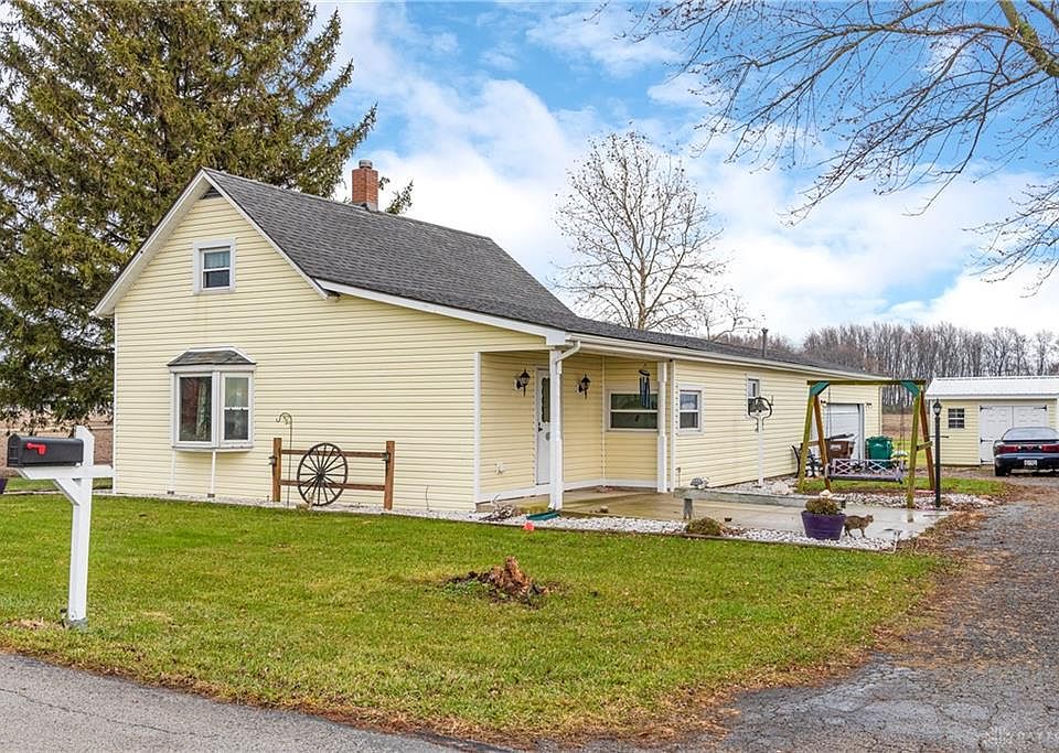 Situated on almost 2.5 acres in Ross Township and Greeneview Local Schools, this well-maintained 4 bed, 1 bath home boasts over 1,700sqft with loads of updates! The first floor features a large living room, remodeled kitchen, master bedroom, second bedroom, large bath and spacious laundry. Enter the second floor into a remodeled farmhouse oasis to find 2 additional bedrooms. Outside you'll find a 2.5 car attached garage with bonus 8x10 man-cave room, storage shed, concrete patio. Interior updates include: paint throughout, new flooring to include subfloor in LR and bath, new windows 2018, furnace 5 years old, upgraded outlets, upstairs features new walls, stairs, ceiling, light fixtures, insulation and original wood floor. Outside updates include: new siding and insulation 4 years ago, new gutters, newer roof, 3 year old shed, 2 hydrants and several fruit trees. Here's your chance to own a quiet piece of country with beautiful sunsets!