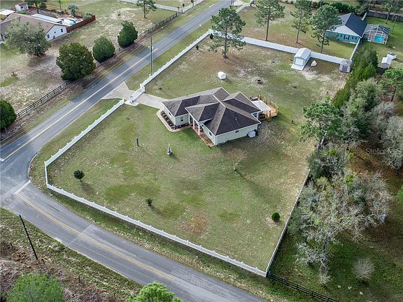 Pride of Ownership is evident! Beautifully maintained Residence on 1.06 acre very close to shopping, hospitals, schools, etc. on Hwy 200, Ocala. This custom and impeccably maintained 3/2 home offers soaring ceilings throughout; cathedral in main living area; open concept plan; chef's kitchen features wood cabinets, Granite counter tops, stainless appliances and deep double sink; breakfast area; living and dining areas; large heated and cooled 4-season room overlooking back covered deck ideal for enjoying the FL Sunshine year round. Custom features include security system, cameras, ceramic tile throughout, 8' doors with over sized rooms; guest bedrooms are 14x14 offering double closets and master bedroom is 14x16 and offers beautiful trey ceiling. Master bath has soaking tub as well as walk-in shower and his/her vanities and walk in closets. No detail has been overlooked! Property is complete with perimeter vinyl privacy fencing and custom entry gate. Property has full irrigation, storage shed and 12x24 detached 1 car garage or workshop with electric. Property is Zoned A-1 so bring your chickens, etc. Also, great soil for gardening and growing your own food.