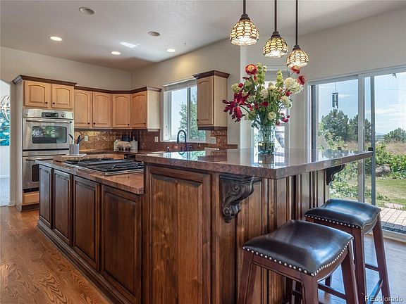 Be reminded daily of why you live in colorful Colorado, thanks to the captivating, panoramic views from this exclusive hilltop castle that sweep from the pine-forested foothills to the Denver cityscape. This rare opportunity in exclusive Ridgepoint at Bear Creek puts you close to everything you need-groceries, restaurants, parks, rec centers, lakes and more-yet has a tucked-away feeling that backs to unbuildable, HOA-owned open space for peace and quiet. Start your day with refreshing vistas and a cup of coffee on your covered back patio and finish it by retiring to your beautiful master suite, complete with a soaking tub and even more spectacular views. The open space in this home stands out, too, with soaring ceilings; a spacious, airy atmosphere; grand columns; a gracefully curving staircase and a completely refinished gourmet kitchen you'll be itching to show off at gatherings. And from the three-car garage to the first-floor office, all the conveniences you want are here, too.