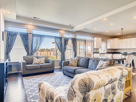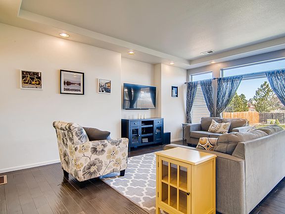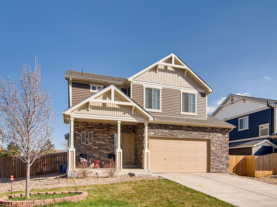 Ideally located in the scenic Reunion community, this 2014 built Granby model brings charm from the moment you arrive. This gorgeous Potomac Farms 2 story features 3 beds, 3 baths and a 2 car garage. The energy efficient central AC, furnace and windows keep this home comfortable all year long. The great open concept design features a family room flowing into a gourmet kitchen with granite counter tops, stainless steel appliances, and hardwood floors throughout the main level. The second floor has a spacious loft area that can be used as an additional family room, a master suite with a walk-in closet and large spa shower, as well as, two secondary bedrooms and a conveniently located upstairs laundry room. Incredible outdoor living with a patio off the front and a deck off the back along with one of the largest backyards in the neighborhood! This house is located just a few blocks from the Bison Ridge Recreation Center and walking distance from 4 different parks. Great schools and easy access to E470, the airport and King Soopers shopping center.