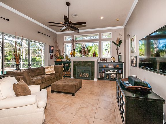 *$20K Price Adjustment* MAGNIFICENT CUSTOM BUILT CHAMPIONS CLUB home is nestled on a quiet cul-de-sac in a stunning neighborhood. The exterior boasts exceptional architectural elements that make it a standout: stone-encased elevation, pavered driveway, tile roof, double glass doors, and columned entry. Verdant tropical landscaping frames the manse while the spectacular, enclosed, pavered lanai and heated pool features a spill-over spa and upgraded pool finish. At over 3900 SF, this split 5-bedroom/4.5 bath/3 car garage residence with upstairs bonus room offers luxe fixtures and finishes throughout. Premier fans, lighting and dimmers cast a glow on opulent trey ceilings, wood flooring, crown moldings and 5-inch baseboards with elegant plantation shutters throughout. The chefs kitchen, family room with gas fireplace and casual dining nook are lifted from a magazine layout. Master bedroom suite features his/hers walk-in closets and a master bath with garden tub, walk-in shower, and decorative listello accents. Custom 42 stacked cabinetry, gas appliances, center island and granite countertops are found in this dream kitchen. With a superior whole house audio system, premium organization designs in all closets, built-in entertainment center in the bonus room, and central vacuum - youll want for nothing in this sumptuous home. Near shopping, A-rated schools, and restaurants. The amenity-rich gated community boasts a clubhouse, fitness center, pool/ spa, tennis courts, and picturesque veranda.