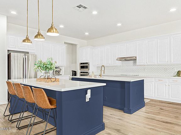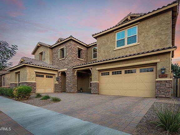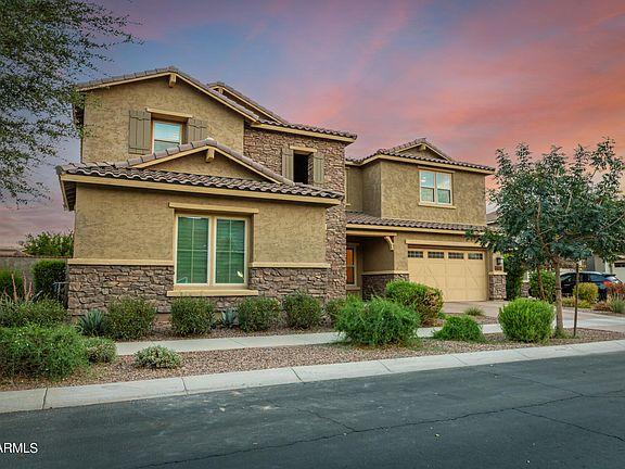 Welcome home to Eastmark! One of the best-selling master-planned communities in Arizona. This picture perfect property boasts almost 5,000 livable sq ft, a brilliant floor plan with NEW finishes & design touches that make this home better than new! The welcoming curb appeal with with paver driveway & front porch invite you home. The heart of this home is the gourmet kitchen boasting huge double islands, new quartz counters, new backsplash, new dishwasher, stainless appliances, huge pantry and so much cabinetry. Also downstairs are the formal dining, living room, huge kitchen nook, family room and a guest bedroom & full bath! The 11 ft multi-slide door allows gorgeous views of the resort style backyard! Upstairs there is room for everyone. A spacious game room is adjacent to a built in office. The primary bedroom is split from the other bedrooms and boasts a seating area or gym space, a recently remodeled bathroom and an enormous closet. The 4 other bedrooms upstairs are all nice size and 3 of them offer large walk-in closets.