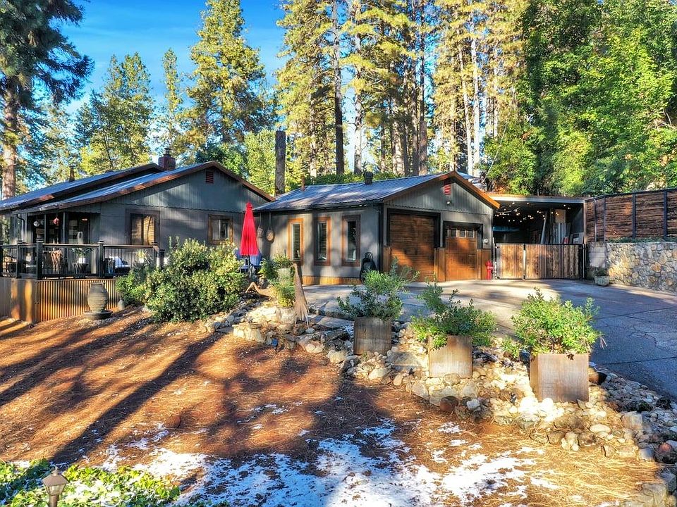 Mountain Getaway with Treetop views! This 3 bedroom 2 bath One level home is tastefully remodeled with lots of amenities! New TimberTech decking with hardwired lighting, Anderson windows and Custom wood blinds throughout. New Italian tile and engineered hardwood flooring. Stainless Steel appliances and reverse osmosis water system Metal roofs with fire suppression system, new burnt wood fencing, retaining walls and rusted skirting. Two car garage, workshop and covered RV with cleanout. Every inch of the backyard is creatively landscaped and set up for entertaining. This is a one of a kind artist retreat within walking distance to Historic Empire Mine State Park that offers miles of trails for horse riding mountain biking and hiking!