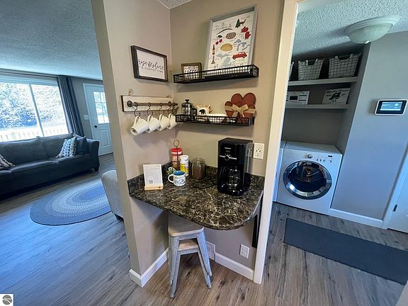 WOW Factor for this River Front totally remodeled home in 2019 with all new kitchen premium shaker cabinets with high end Cabria Quartz tops. All new premium laminate flooring throughout. Bathroom was totally gutted and remodeled. New furnace and a/c units installed in 2019. Home was just freshly painted April 2023. This home has an oversized 1.5 car attached garage with an additional storage room sectioned off in the rear with access doors to garage and to rear of home. Vinyl replacement windows, siding and roof are approximately 10-15 years old. Great kayaking right in your own back yard !! - with good fishing on the Upper Platte River. No septic field is a nice feature, has public sewers. Great central location with close proximity to restaurants, pubs, parks, stores, Honor Market, Papa J's (best pizza around) Less then 20 minutes to the famous Sleeping Bears Dunes or Crystal Mountain Sky and Golf Resort, and 35 minutes to Traverse City. So many awesome hiking trails in this area too. Great many lakes in the area with access to fishing, boating and water activities. This is Pure Michigan at its finest with a much better price point then the major resort towns. This also can be an excellent Airbnb rental, cottage, primary residence or combination vacation home and short-term rental investment. Have it pay for itself. This home is fully furnished and ready for use, nothing needed. Get details from your agent on how the personal property will be structured. There is a high-quality surveillance, alarm, smoke, fire, carbon monoxide, glass break, water detection, thermostat control system that will be included in the sale. (All can be monitored and controlled by an App. - So many nice features in this home schedule soon don't think this one will last long. Agent also has ownership interest in this property.