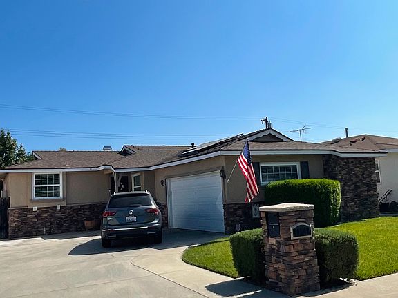 Remodeled family home with large kitchen, granite tops, wood cabinets, tile floors in bathrooms. All recently refinished wood floors throughout bedrooms and living room. Beautiful sprinkler back yard redone in 2022. Wonderful open concept floor plan. Oversize two car garage with storage. Large barn looking shed in back yard. New kitchen appliances Refrigerator, dishwasher and microwave all stainless steel. Beautiful home ready to show. Brand new washer and dryer included in rental. Crown molding throughout home all wood surfaces in bedrooms, living and dining. Spacious private back yard perfect for entertaining. Nice stone firepit outside with rock. HOME CAN BE RENTED FULLY FURNISHED. Utilities paid by tenant. Solar electricity.