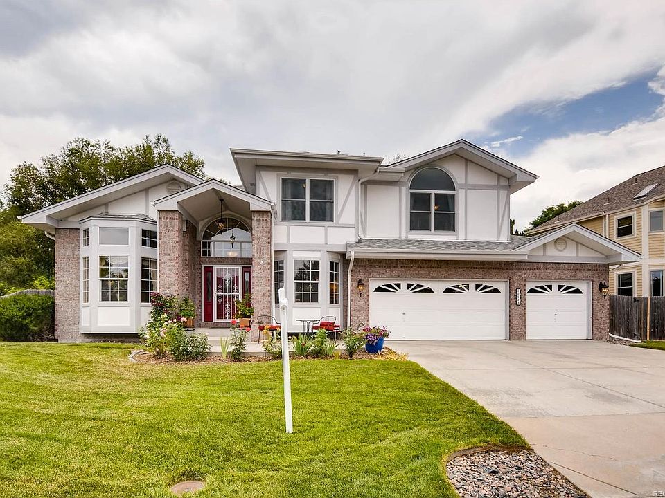 LOTS OF EXTRAS / MOVE IN READY! ~ 4 BEDROOM, 4 BATH, 4 CAR HEATED GARAGE with WORKSHOP in desirable Canterbury neighborhood. Great main floor open concept w/lots of natural light, vaulted ceilings, 6-Panel doors, hard wood flooring, no laminate flooring or popcorn ceilings, new carpet in family room & office, security system, recent new gutters & HVAC! Upper level split floor plan provides Master Suite privacy w/oversized shower, dbl sinks, quartz counters & dbl entry walk-in closet. Bedrooms have hard wood flooring & Pella energy efficient windows. Host Bronco parties in your lower level PROFESSIONALLY FINISHED THEATRE/BAR/GAME ROOM w/slab granite front & back bar counters, 123 inch viewing screen, surround sound system, BILLIARDS TABLE & Budweiser table light included. The outdoor patio is partially covered & screened for privacy & also open air for barbecuing or taking in the Colorado sunshine! Well cared for landscaping & perennial gardens are fully sprinkled.