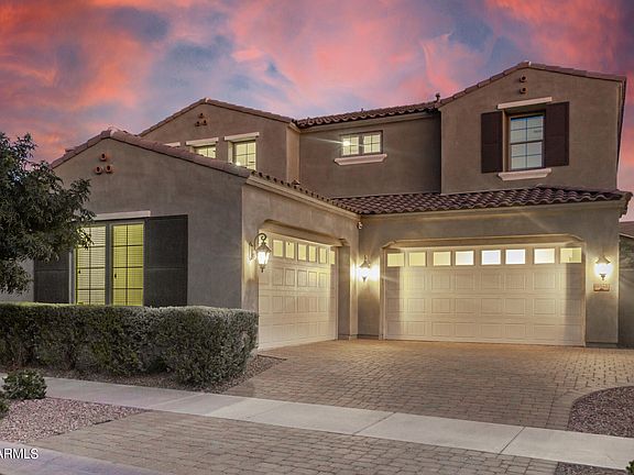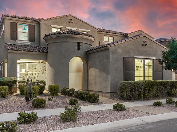 Master planned community of Eastmark! This incredible home is perfect for entertaining & those that need LOTS of bedrooms & garage space! This amazing residence offers a chef's kitchen w/ gas stove, eat-in kitchen dining area, island seating, butler's area, huge walk-in pantry, & access to the outdoor kitchen! Plenty of storage with 6 bedrooms (each w/ walk-in closets), 4.5 bathrooms, separate dining room, den, loft, movie room w/ projection tv, 2 laundry rooms (1 on each floor) & 4+car garage w/ new epoxy coating. There is an abundant amount of storage in the extra closets upstairs and downstairs and the ensuite is the perfect retreat that includes a separate sitting area, oversized shower, soaking tub, separate vanities, enormous walk-in closet & additional linen closet. Enjoy indoor/ outdoor living through the 12' sliding glass door from the living room & relax by the firepit while your food is prepared in the outdoor kitchen, splash in the pool w/ waterslide, grotto & water features, or play ball on the new turf. The home feels brand new with the new carpeting & paint. Enjoy the Eastmark lifestyle at the community pool, activity center, Eastmark schools, clubs, programs, events, traditions neighborhood parks, restaurants, garden & more. Make this amazing property yours today!