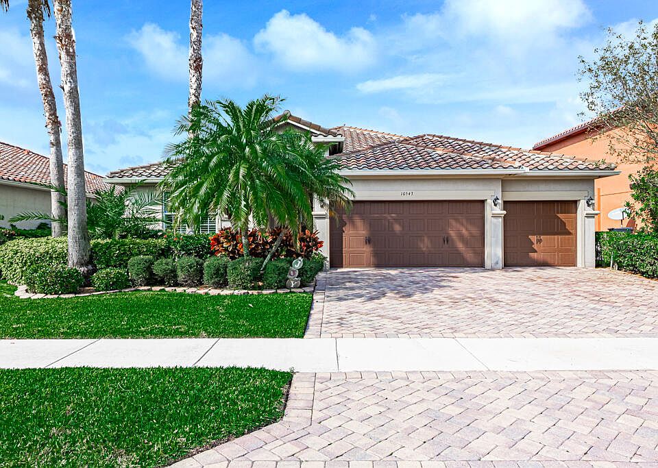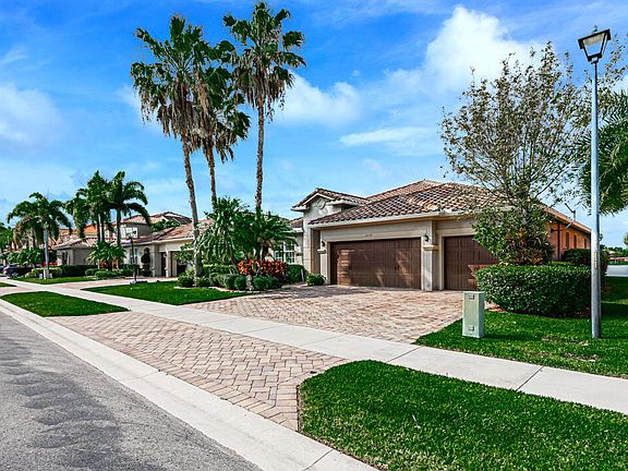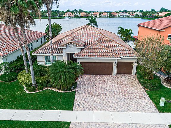 Welcome home to popular 3 BR/2 BA Tanzanite model with bonus area. Entry leads to large open floor plan. Large island kitchen has 42''wood cabinets, granite, SS appliances and cafe area. French doors from family room open to oversized screened patio overlooking large lake and fountain which can be enjoyed from many areas of the house. Master bedroom suite features large his & hers walk-in closets, and master bathroom with dual vanities, Roman tub, and separate shower. Diag. tile. Open bonus area perfect for office, work-out area, or additional bedroom. New A/C and water heater. Property has lots of space for a pool. Community features clubhouse with fitness center; game room; pickleball, tennis, pool, spa and hot tub.