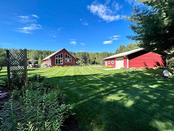 Pristine is one word that describes this property! If you're looking for newer construction, extreme privacy, access to water over 80 acres to roam, hunt, and explore stop looking and start signing! This beautiful, professionally landscaped home is nestled in the middle of a diverse forest, hosting just about every animal calling the Northwoods home. Multiple garages give you plenty of storage for all the toys and there's even a campsite near the water where the in-laws can park the camper. Don't miss your opportunity to own this rare find up north!