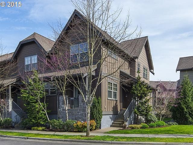 Upscale Luxury Lodge Inspired Townhome will impress you with its unique combination of luxury amenities, location & affordability. Boasts dual master suites & 3 full baths, a stylish kitchen w/SS appliances, slab granite & bamboo floors. Backs to park. Resort community w/clubhouse, pool & trails. Conv. to light rail, Hwy 26, St Vincent's, Nike, Intel, NW 23rd & Vibrant Downtown Portland. Premium end unit!