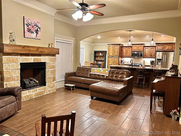 Must see!! This beautiful custom built home features a split floorpan and has several nice upgrades. Back yard backs to a greenbelt!! Open concept kitchen has granite countertops, stainless appliances and beautiful wood look tile. Spacious living room with fireplace, crown moulding. Large Master bedroom, Bath and Walk in closet. Nice covered patio in back yard and plenty of room for a pool, garden, etc. Good sized storage building. Collinsville schools!