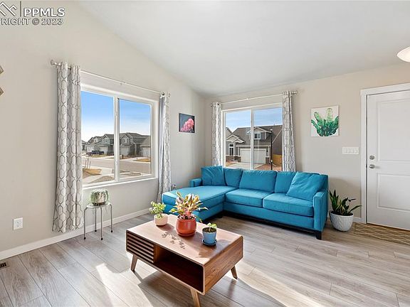 Welcome to this stunning multi-level home situated on a corner lot in the well-kept Southeast neighborhood of Creekside at Lorson Ranch! It boasts 4 bedrooms and 4 bathrooms with 1907 square feet of comfortable living space. As you enter, beautiful LVP floors throughout the main level create a warm and inviting atmosphere. The entry offers a modern light fixture and coat closet. It opens into the living rm which is a perfect spot to relax after a long day. Moving through the living rm, you'll find the dining rm and kitchen featuring wood cabinets, plenty of counterspace, and stainless-steel appliances - including a smooth top range oven, dishwasher, built-in microwave oven, and French door refrigerator. Step down from the dining area into the family rm which has a slider to the backyard patio and is the ideal place for entertaining family and friends. A powder bathroom and laundry rm are found off the family rm. Moving upstairs, 3 bedrooms with neutral carpet and 2 bathrooms await. The primary suite boasts a generous closet and adjoining shower bathroom with vanity, mirror, and tiled shower. 2 additional upper level bedrooms have walk-in closets and share a full bathroom with vanity, mirror, and tub/shower. The lower level features a versatile bonus room with huge closet (currently used as a gym), a full bathroom, and a bedroom with neutral carpet and closet. This space is perfect for hosting guests or creating a private sanctuary away from the main living area. Outside, the fenced level backyard has auto sprinklers and a patio for outdoor relaxation and fun. Creekside at Lorson Ranch is conveniently located near I-25. It’s a quick commute to Fort Carson, Peterson Space Force, and downtown Colorado Springs. Outdoor enthusiasts will love this location too, as it's close to Bluestem Prairie Open Space and Fountain Creek Regional Park. Don’t miss the opportunity to make this gorgeous, move-in ready house your new home!