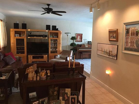 Spacious 4 bedroom home in desirable location! No HOA!! Newer kitchen (2103) with granite/SS appliance. Both baths renovated in 2013. Solar hot water heater installed in 2015. If you need large bedrooms, then you MUST see this home. High impact windows in addition to accordion shutters. New electrical panel. Transferrable service contract. tile thruout.NO CARPET!Crown moulding in the master, new 6'' baseboard thru out. Fenced yard and tranquil gardens surround the 15x30 resurfaced swimming pool. Covered screened patio with plenty of room for entertaining. Nob Hill Estates is centrally located.. close to all shopping, restaurants, highways and top rated schools! Need to be in for the new school year? We can make it happen...Call today for an appointment!Living room draperies do not conv