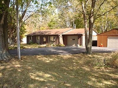Ranch home with 3 bedrooms, 1 bath, Buck Stove, large eat in kitchen, with updated cabinets. Some cabinets have pull out drawers. Unigue designed ceiling in living room. Crown molding in master bedroom. Second vanity just outside bathroom. Surround in bath 2 years old. Frig, cook stove, washer/dryer included. Insulated 1 car attached garage, an additional insulated 2 car detached garage and a 3 car detached garage. Beautiful setting with creek running behind home.