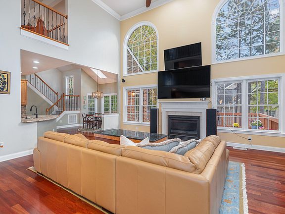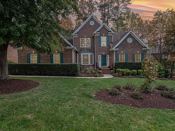 *SELLER HAS ACCEPTED AN OFFER, WAITING ON SIGNATURES Welcome to this magnificent all-brick executive home, perfectly positioned across from the community clubhouse and restaurant, offering the ultimate in convenience and sophistication. Upon entering, you're greeted by a grand two-story foyer and great room with soaring ceilings, gas fireplace and a stunning wall of windows that flood the space with natural light. Elegant Brazilian cherry hardwood floors flow throughout, creating a warm and refined ambiance. At the heart of the home is a chef's dream kitchen, outfitted with a new dishwasher, newer refrigerator, convection wall oven with microwave, and a six-burner gas cooktop. A cozy adjacent dining area with vaulted ceilings with skylights provides a bright and inviting spot for family meals. The main floor also features a spacious, vaulted primary suite with a recently updated spa-like bathroom and custom closet (2021). Perfect for entertaining, the dedicated billiard room, adjacent from the great room, (or flex space) boasts a vaulted ceiling, wet bar, custom cabinetry, wine cooler and beverage refrigerator (2022). The room is further enriched by a remarkable, authentic backlit Louis Tiffany stained glass window, circa. 1900, adding a unique historical touch. Upstairs, you'll find three generously sized secondary bedrooms, a bonus room, and two full baths, along with a large loft accessible via a rear staircase for added privacy and versatility. Step outside to a newer deck with a motorized retractable awning (2022) and a sunken hot tub—your own private retreat overlooking a wooded lot with an irrigation system. Perfect for relaxing with morning coffee or hosting evening gatherings, this serene space is a true extension of the home. Nestled within the prestigious Brier Creek Country Club, this residence promises a luxurious lifestyle with access to world-class amenities, including a championship golf course, fitness center, tennis and pickleball courts, swimming pools, playground, trails, and beautifully designed clubhouses. The surrounding area also offers top-rated schools, including Brier Creek Elementary, Pine Hollow Middle, and Leesville Road High School. For outdoor enthusiasts, Brier Creek Greenway and Lake Crabtree County Park are close by, offering scenic trails and diverse recreational options. Plus, you're minutes from excellent dining and shopping, with popular spots like Angus Barn and Brier Creek Commons just around the corner. Don't miss your opportunity to own this exceptional home in a highly sought-after community!