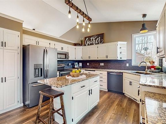 This stunning home is situated on the 11th Fairway of Cedar Creek Golf Course with a warm and inviting ambiance and an abundance of natural light that radiates throughout. The kitchen is a chef's dream, featuring exquisite granite countertops, a tasteful tiled backsplash, and new stainless-steel appliances that elevate the space. The kitchen also boasts new flooring, making it an even more delightful space to cook and entertain. Cozy up to the fireplace in the family room, which also features exquisite built-ins that add to the home's charm. The main-level office is perfect to work from home or tackle homework. Step outside and unwind on the beautiful deck offering serene views ideal for relaxation. The lower level is an entertainer's paradise, featuring a theater room that walks out to the backyard patio and fire pit, offering ample space to run and play. There is plenty of storage space on the lower level and in the heated, insulated garage. This home is an absolute must-see!