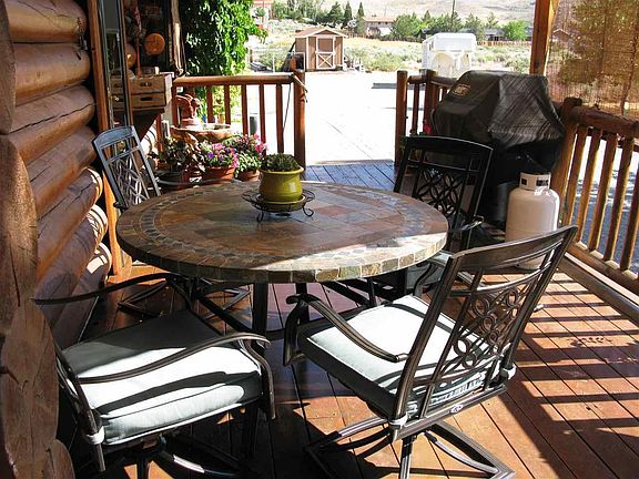Wonderful log home on over an acre in Mogul. This horse property is close to town yet in the country. Attractive & comfortable with 2800 square feet, 3 bedrooms & 2 baths. This home is the ultimate in comfort with spacious rooms; living room boasts stone fireplace with wood-burning stove. Windows bring in light. Various sitting areas inside & out with wood patio area, paver patio & beautiful views of the mountains. Master suite features a see-through double sided gas log fireplace. Office and study.