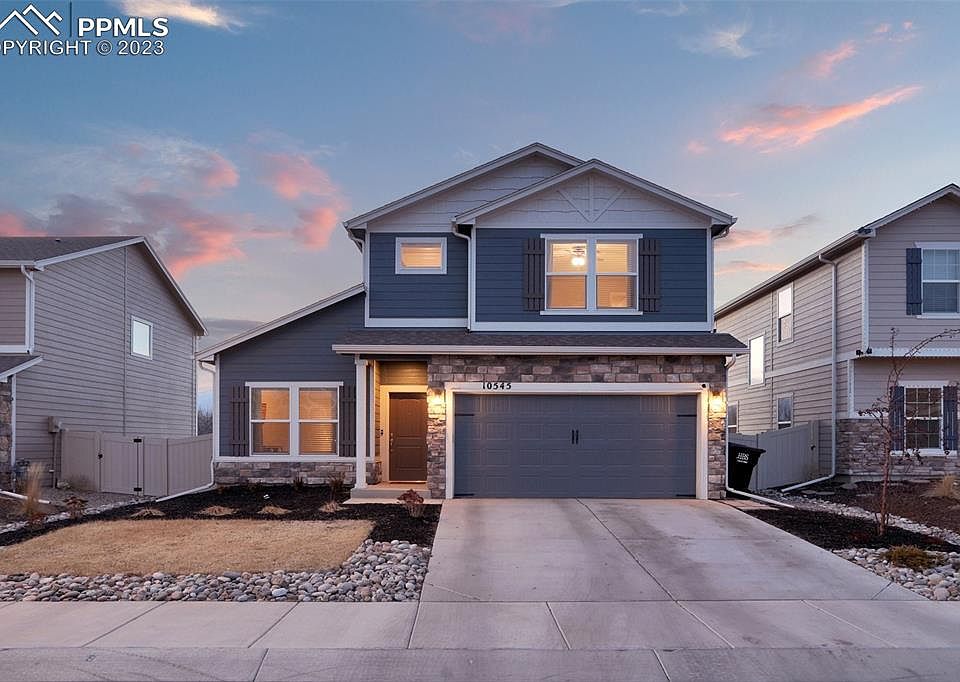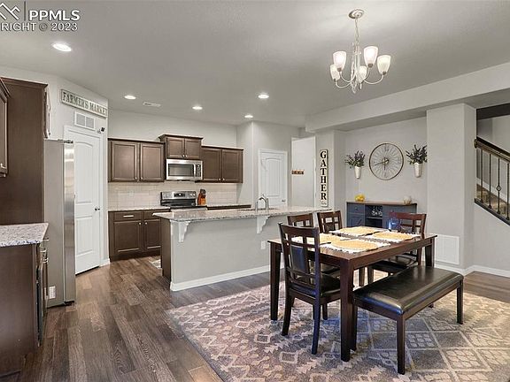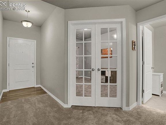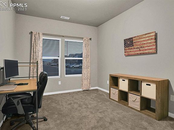 Come see this beautiful home in Ventana! This spacious 3-bedroom home backs to open space and has gorgeous views of Pikes Peak. The main level has a nice entry leading to a light and airy office with gorgeous French doors. You will also find a convenient half bath and an open floor plan to the family room, dining room, and amazing kitchen. The kitchen features stainless steel appliances, a large island and pantry, and has plenty of cabinets and storage. Access to the private backyard is off of the dining room, in which breathtaking views of Pikes Peak abound. You can then make your way upstairs past the wrought iron railing where you will find three bedrooms and the laundry room. The neighborhood features a pool, gym, and hiking trails. From this home, you will find an easy commute to Ft. Carson. This truly is a wonderful home!