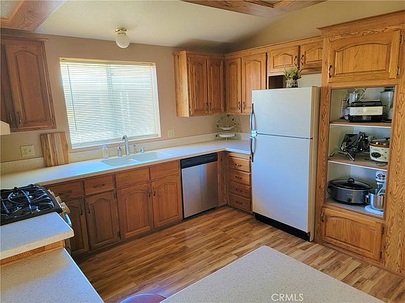 HERE IT IS!!!! THE ONE YOU HAVE BEEN WAITING FOR in HIGHLAND SPRINGS VILLAGE 55+ COMMUNITY!!!! You want a 2 CAR GARAGE?? You want a NEWER BUILT Model??? HOW ABOUT THE MOST RECENT BUILT FOR SALE RIGHT NOW? You want VAULTED CEILINGS and an OPEN FLOOR PLAN?? You want a PRIVATE BACKYARD?? You want NEWLY PAINTED EXTERIOR and INTERIOR???? You want to OWN YOUR OWN LAND???? RECORDED 433....This home has that too!!!! This home has all those amenities and so much more. Come see this 2 bedroom 2 bath with a BONUS SUNROOM. As you enter through your new home's front door into an enormous wide open living room with vaulted ceilings and a front wall of half moon style windows for incredible bright and sunny views. The living room is open to the dining room with built in curio cabinet featuring glass display doors. The Kitchen is open to the dining room and living room. The kitchen presents corian type counters and a breakfast bar seating area. Stove and dishwasher are stainless steel. Stove is newer and has a middle burner plus other cool options. Dishwasher is brand new. Tons of cabinets and storage in kitchen and pantry closet in the hall. Laminate wood plank look flooring in kitchen, hall, laundry room and hall bathroom. New carpet in both bedrooms. Primary bedroom is oversized with vaulted ceilings, ceiling fan and massive walk in closet. Primary bathroom has inviting soaking tub and separate walk-in access shower. There are also double sinks plus a lighted vanity sitting area. 2nd bedroom is large with a wall of closets and vaulted ceiling with ceiling fan. Sunroom is huge and makes for a great craft room, pool table area, or guest room, this vast area lends itself to countless entertaining opportunities and has it's own a/c unit to keep you comfortable year round. Laundry room with utility sink and 2 CLOSETS also includes the stacked washer and dryer. Backyard is private with with pavers and concrete plus the added bonus of fruit trees, Green Apple and Orange. Shed is extra large with double door entry for even more storage. 2 CAR GARAGE with work bench and cabinets. Make your appointment to see this immaculate home today!!